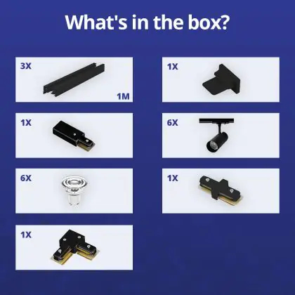 | Herstellername | Complete L shaped 1-Phase Track Set Black incl. 6x Spot fixture + GU10 2700K 3W Dim – 1 x 2 meter i | |