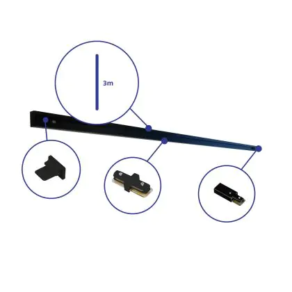 Bright Choice Rail Set 1-Phasen 3 Meter Schwarz | incl. Abschlusskappe, Stromanschluss und L-Verbinder