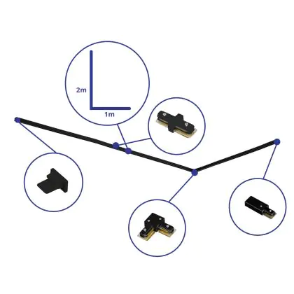 Bright Choice Rail Set 1-Phasen L 1 x 2 Meter Schwarz | incl. Abschlusskappe, Stromanschluss und L -Verbinder
