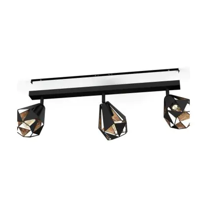 Eglo Deckenleuchte Carlton 7 Stahl Schwarz Bernstein | IP20 - Geeignet für 3x E27