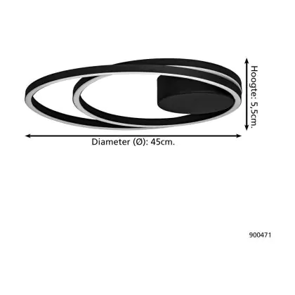 Eglo Deckenleuchte Ruotale Aluminium Stahl Schwarz 36W 4400lm - 830 Warmweiß | IP20