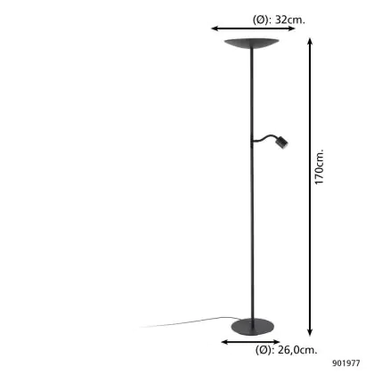 Eglo Stehlampe Conivarino Stahl Schwarz 30.5W 3150lm - 827 Extra Warmweiß | Dimmbar