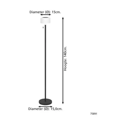 Eglo Stehlampe Montapalma-L Stahl Schwarz 2W 190lm - 830 Warmweiß | IP54 - Dimmbar - USB-C