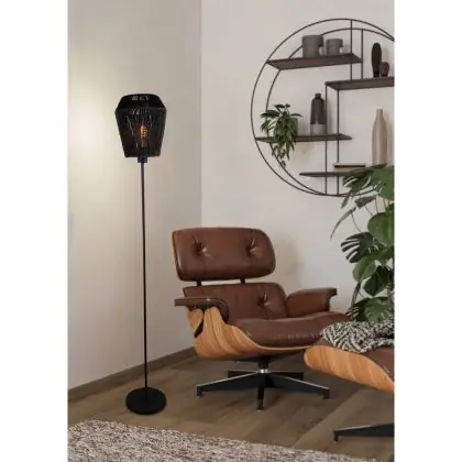 Eglo Stehlampe Persley Stahl Schwarz Papier | IP20 - Geeignet für 1x E27