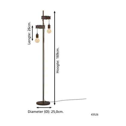 Eglo Stehlampe Townshend 4 Stahl Braun Schwarz | IP20 - Geeignet für 2x E27