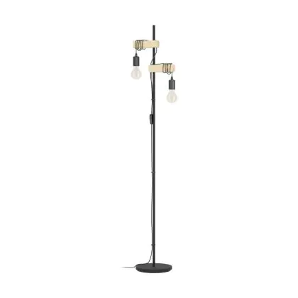 Eglo Stehlampe Townshend Stahl Holz Schwarz Braun | IP20 - Geeignet für 2x E27