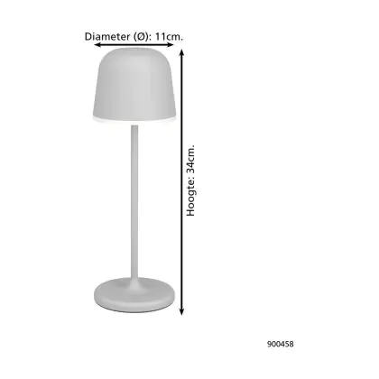 Eglo Tischlampe Mannera Aluminium Grau 2W 200lm - 830 Warmweiß | IP54 - Touch Dimmbar - USB-C