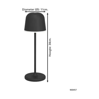 Eglo Tischlampe Mannera Aluminium Schwarz 2W 200lm - 830 Warmweiß | IP54 - Touch Dimmbar - USB-C