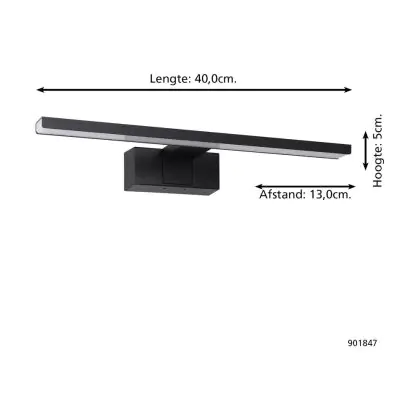 Eglo Wandleuchte Conettilla Aluminium Schwarz Badezimmerbeleuchtung 7W 850lm - 830-840-865 CCT | IP44