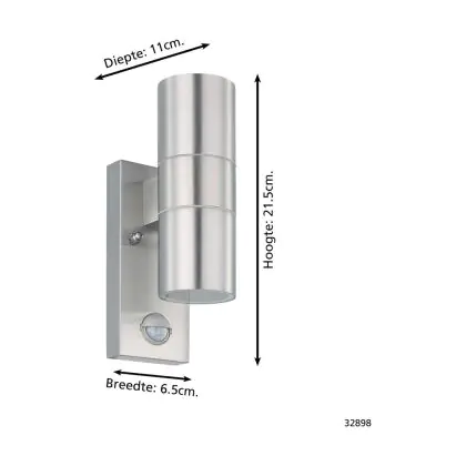 Eglo Wandleuchte Riga 5 Rostfreier Stahl 2W 250lm - 830 Warmweiß | IP44 - Bewegungssensor