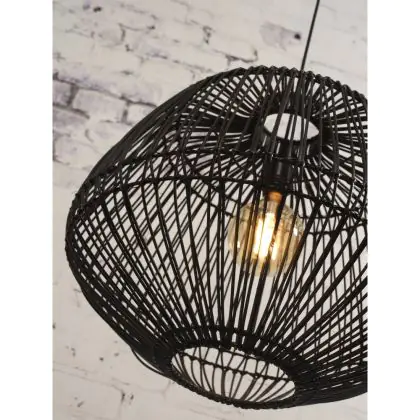 Good&Mojo Pendelleuchte Madagascar Rattan Schwarz | Geeignet für 1x E27