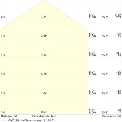 ![]() Der IP-Wert zeigt an, wie gut das Leuchtmittel gegen das Eindringen von Feuchtigkeit und Staub geschützt ist. Die erste Ziffer gibt den Schutz gegen Staub an: von 0 = „gar keinen Schutz“ bis 6 = „komplett staubdicht“. Die zweite Ziffer zeigt den Schutz gegen Feuchtigkeit an: von 0 = „gar keinen Schutz“ bis 8 = „geschützt gegen Untertauchen“. Daraus resultiert: Produkte mit einer IP44-Schutzklasse sind vor Spritzwasser geschützt, Produkte mit IP65 oder höher sind (komplett) staub- und wasserdicht. |
