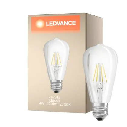 Ledvance Classic LED E27 Birne Fadenlampe Klar 4W 470lm - 827 Extra Warmweiß | Ersatz für 40W