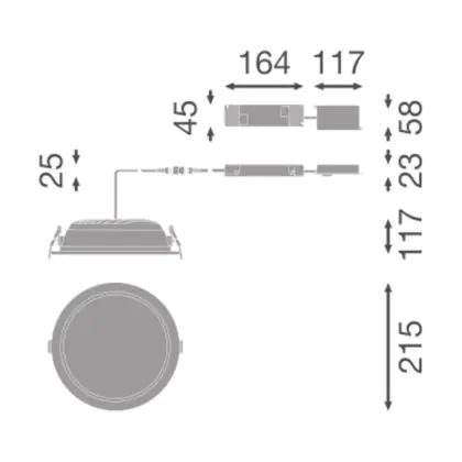 | Herstellername | DOWNLIGHT COMFORT HIGH EFFICIENCY DALI UGR<19 D200 P 25W 840 U19 WT | |