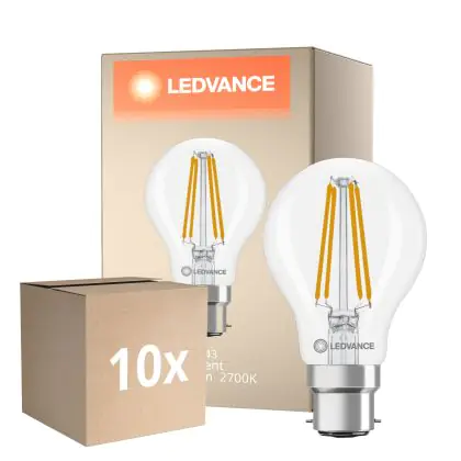 Mehrfachpackung 10x Ledvance Classic LED B22 Birne Fadenlampe Klar 5.9W 806lm - 827 Extra Warmweiß | Dimmbar - Ersatz Für 60W