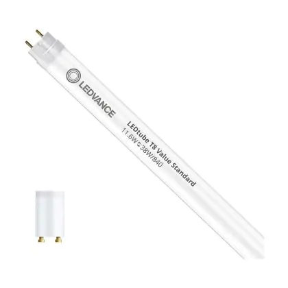 Bei der Mehrfachpackung 10x Ledvance LED Röhre T8 Value (EM/Mains) Standard Output 11.6W 1400lm - 840 Kaltweiß | 105cm - Ersatz Für 38W handelt es sich um eine energieeffiziente LED-Röhre. Sie ersetzt Ihre konventionelle Leuchtstoffröhre mit 38W. Die Röhre ist 1061 mm lang und hat die Farbtemperatur . Die durchschnittliche Lebensdauer der LED-Röhre beläuft sich auf 30000 Stunden. Wir bieten Ihnen für dieses Produkt eine Garantie von 5 Jahre an.