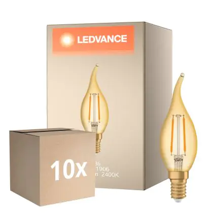 Mehrfachpackung 10x Ledvance Vintage 1906 LED E14 Kerze Gold 2.5W 220lm - 824 Extra Warmweiß | Ersatz Für 22W