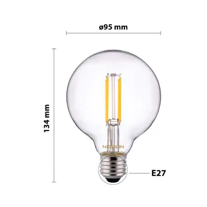 | Herstellername | Multipack 10x Noxion Lucent Filament LED Globe G95 E27 220-240V 7W 806lm CRI80 2700K DIM (60W eqv.) | |