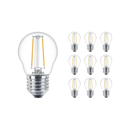 Mehrfachpackung 10x Philips Corepro LED Lustre E27 Kugel Fadenlampe Klar 2W 250lm - 827 Extra Warmweiß | Ersatz für 25W