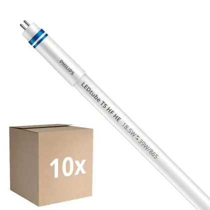 Bei der Mehrfachpackung 10x Philips LED Röhre T5 MASTER (HF) High Output 18.5W 2800lm - 865 Tageslichtweiß | 85cm - Dimmbar - Ersatz Für 39W handelt es sich um eine energieeffiziente LED-Röhre. Sie ersetzt Ihre konventionelle Leuchtstoffröhre mit 39W. Die Röhre ist 863 mm lang und hat die Farbtemperatur . Die durchschnittliche Lebensdauer der LED-Röhre beläuft sich auf 60000 Stunden. Wir bieten Ihnen für dieses Produkt eine Garantie von 5 Jahre an.