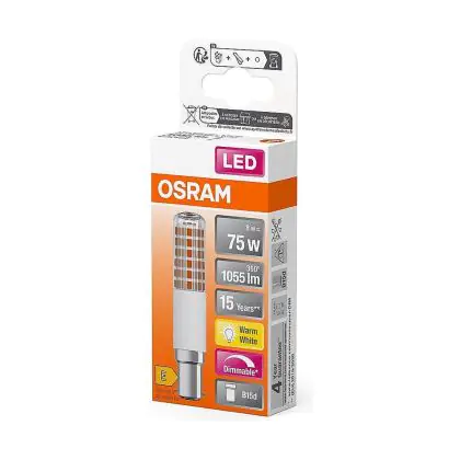 Mehrfachpackung 4x Osram Spezial T Slim LED B15d Klar 8W 1055lm - 827 Extra Warmweiß | Dimmbar - Ersatz Für 75W