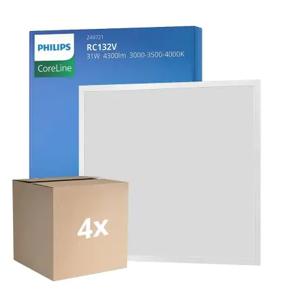 Mehrfachpackung 4x Philips LED Panel CoreLine RC132V 22/31W 2900-4300lm - 830-835-840 CCT | 60x60cm - UGR <19 - Wählbare Wattzahl