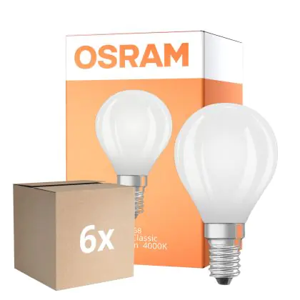 Mehrfachpackung 6x Osram Classic LED E14 Kugel Fadenlampe Matt 5.5W 806lm - 840 Kaltweiß | Dimmbar - Ersatz Für 60W