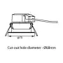 Der Ausschnitt einer Leuchte unterscheidet sich von den Abmessungen der Leuchte selbst und bezeichnet speziell die Grösse der Öffnung in der Decke, die für die sichere Montage der Lichtquelle benötigt wird.