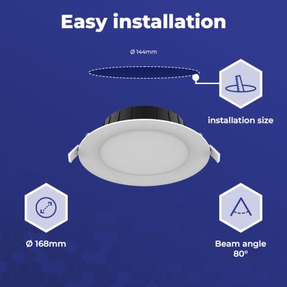 | Herstellername | Noxion LED Downlight Hera Flat Recessed Black 15W 1500lm 80D - 827-830-840 CCT | 168mm - Cutout 144m | |