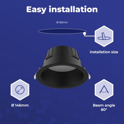| Herstellername | Noxion LED Downlight Hera Deep Recessed Black 9W 900lm 80D - 827-830-840 CCT | 146mm - Cutout 120mm | |