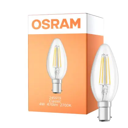 Osram Classic LED B15d Kerze Fadenlampe Klar 4W 470lm - 827 Extra Warmweiß | Ersatz für 40W