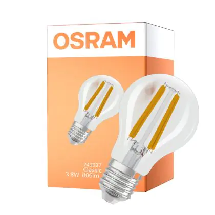 Osram Classic LED E27 Birne Fadenlampe Klar 3.8W 806lm - 840 Kaltweiß | Dimmbar - Ersatz Für 60W