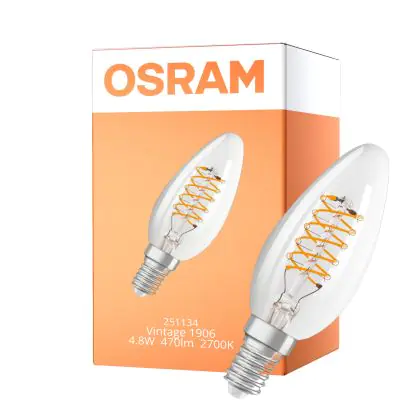 Osram Vintage 1906 LED Classic Slim E14 Kerze Fadenlampe Klar 4.8W 470lm - 827 Extra Warmweiß | Dimmbar - Ersatz Für 40W