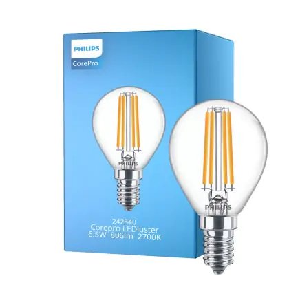 Philips Corepro LED Lustre E14 Kugel Fadenlampe Klar 6.5W 806lm - 827 Extra Warmweiß | Ersatz für 60W