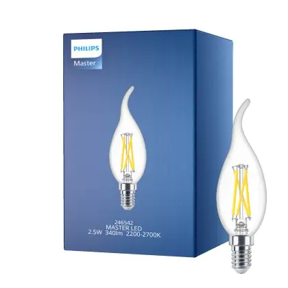 Philips MASTER LED E14 Gebogen-tip Kerze Fadenlampe Klar 2.5W 340lm - 922-927 Dim To Warm | Höchste Farbwiedergabe - Dimmbar - Ersatz Für 25W