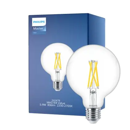 Philips MASTER Value LED Globe E27 93mm Fadenlampe Klar 5.9W 806lm - 922-927 Extra Warmweiß | Höchste Farbwiedergabe - Dimmbar - Ersatz Für 60W