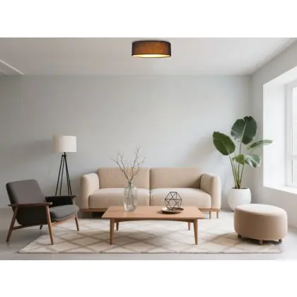 D'Lite Plafonnier Lunelle 30cm Textile Noir | Convient pour 2x E27