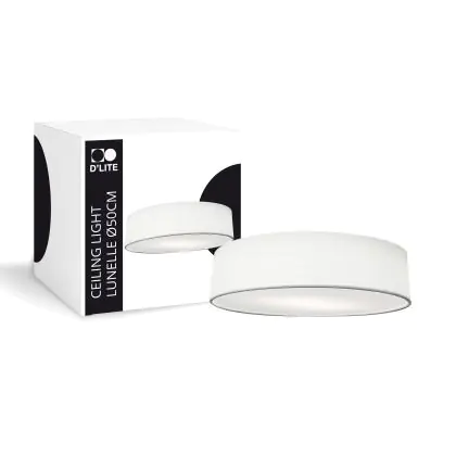 D'Lite Plafonnier Lunelle 50cm Textile Blanc | Convient pour 3x E27