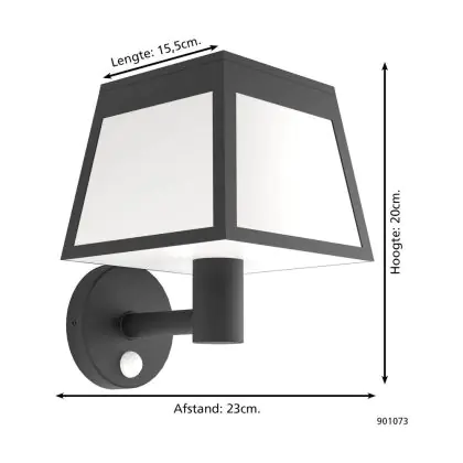 Eglo Applique Murale Altilia Solar Noir 7W 800lm - 830 Blanc Chaud | IP65 - Détecteur De Mouvement