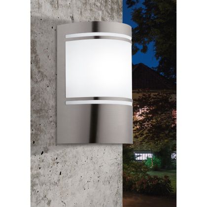 Eglo Applique Murale Cerno 2 Acier Inoxydable | IP44 - Convient pour 1x E27 - Détecteur De Lumière