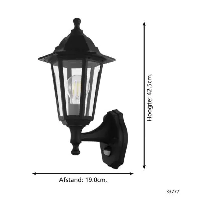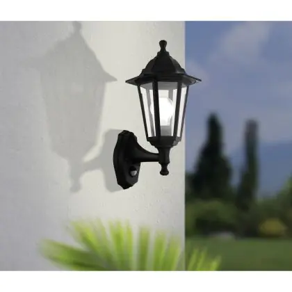 Eglo Applique Murale Duanera Noir | IP44 - Convient pour 1x E27 - Détecteur De Mouvement