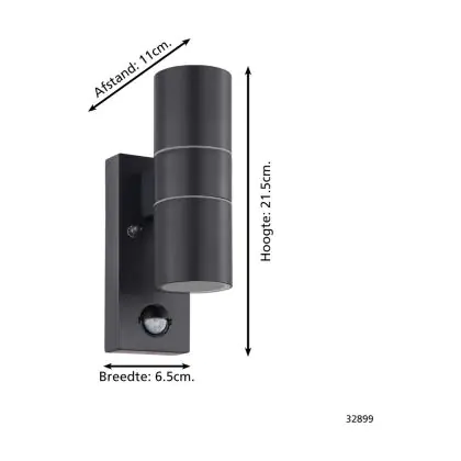 Description Eglo Applique Murale Riga 5 Acier Anthracite 2W 250lm - 830 Blanc Chaud | IP44 - Détecteur De Mouvement