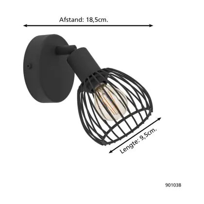 Eglo Applique Murale Sonni Acier Noir | IP20 - Convient pour 1x E14