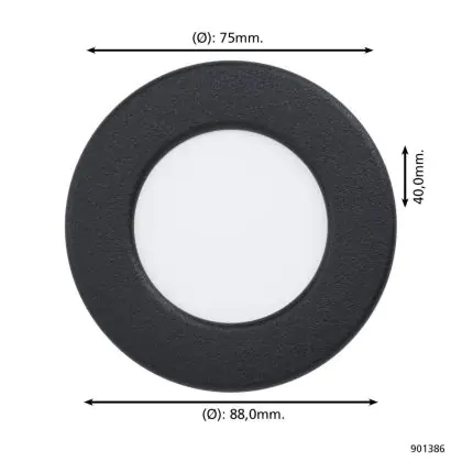 Eglo Encastré Spot Fueva 6 Plastique Noir 3.7W 450lm - 827-840-865 CCT est un spot LED encastrable. Ce luminaire est conçu pour un éclairage d’accentuation pour un usage domestique ou bien professionnel. LED Intégré, ce spot LED Eglo en Plastic a besoin d’une place nécessaire de mm de largeur et mm de profondeur. Ce luminaire est compatible avec une ampoule GU10, il est important de faire attention si vous décidez de changer d’ampoule.