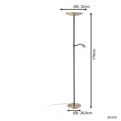Eglo Lampadaires Salon Conivarino Acier Brushed Laiton, Noir 30.5W 3150lm - 827 Blanc Très Chaud | Dimmable