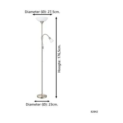Eglo Lampadaires Salon Up 2 Acier Nickel Satiné | IP20 - Convient pour 1x E27
