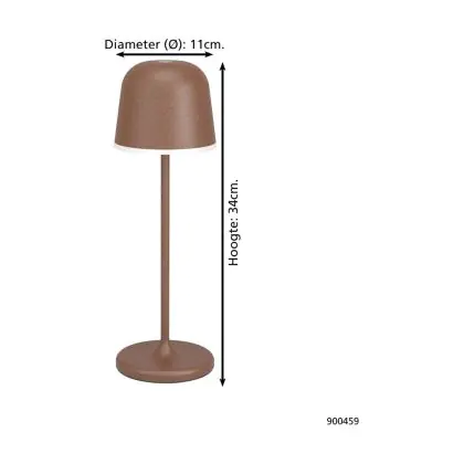 Eglo Lampe De Chevet Mannera Aluminium Rouille 2W 200lm - 830 Blanc Chaud | IP54 - Touch Dimmable - USB-C