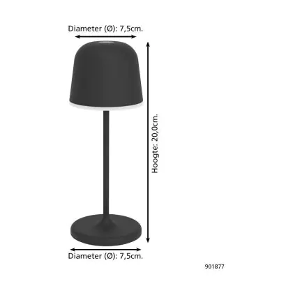 Eglo Lampe De Chevet Mannera-S Aluminium Noir 1W 170lm - 825-830-840 CCT | IP54 - Touch Dimmable - USB-C