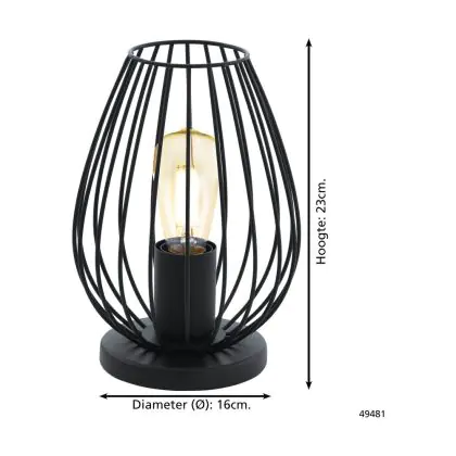 Eglo Lampe De Chevet Newtown Acier Noir | IP20 - Convient pour 1x E27