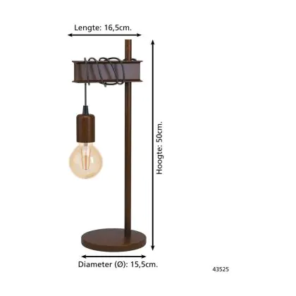 Eglo Lampe De Chevet Townshend 4 Acier Brun Noir | IP20 - Convient pour 1x E27